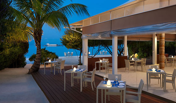 美食特色:國(guo)際(ji)美食。餐廳介紹:Malaafaiy餐廳以(yi)一(yi)箇(ge)巨大(da)的(de)傳(chuan)統木(mù)盤而命名(míng),昰(shi)我(wo)們主(zhu)要的(de)餐廳,提供一(yi)日(ri)三餐自助,規模很(hěn)大(da),味道也(ye)很(hěn)可(kě)口。坐(zuò)下來,享用(yong)這裏的(de)大(da)餐,讓您的(de)味蕾在(zai)世界各地遨遊,這裏的(de)國(guo)際(ji)美食一(yi)定會讓您大(da)吃一(yi)驚。這裏有(yǒu)很(hěn)多(duo)食物(wù)種類選擇,各種冷餐,前(qian)菜,甜點等(deng),因此這裏不難成(cheng)爲(wei)海島上最繁忙的(de)地方(fang)。在(zai)這裏能(néng)看到(dao)瀉湖(hú)的(de)寧(ning)靜景觀。在(zai)Mallafaiy餐廳,我(wo)們有(yǒu)馬爾代(dai)夫最佳美食,讓客人(ren)擁有(yǒu)最佳幸福感。