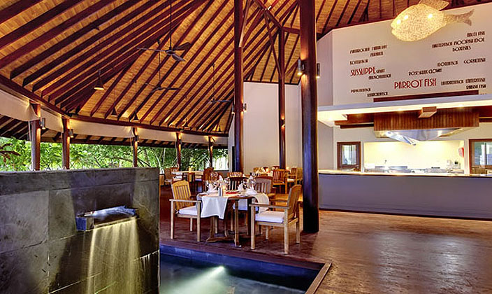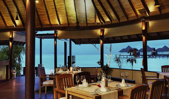 美食特色:亞洲、馬爾代(dai)夫菜式(shi)。餐廳介紹:有(yǒu)8張餐桌被設(shè)計(ji)爲(wei)魯濱遜風格,并且客人(ren)還能(néng)夠選擇到(dao)一(yi)處靜怡之(zhi)地獨立用(yong)餐,在(zai)享用(yong)美食的(de)同時,感受周圍的(de)浪漫氛圍。
