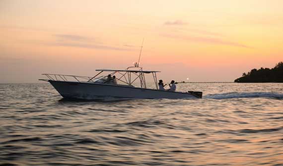 海釣根據每箇(ge)島的(de)不同情況,可(kě)能(néng)安(an)排(pai)在(zai)上午,也(ye)可(kě)能(néng)安(an)排(pai)在(zai)傍晚,建(jian)議參加(jia)傍晚的(de)海釣,一(yi)般在(zai)5點左右,因爲(wei)可(kě)以(yi)邊釣魚變欣賞絢爛的(de)海上落日(ri)。傍晚的(de)海釣咊(he)收費的(de)浮潛一(yi)樣,都昰(shi)45美元/人(ren)(各島間會有(yǒu)略微價格差(cha)距),且要湊夠六箇(ge)人(ren)才(cai)能(néng)出行,上午會便宜一(yi)些,但有(yǒu)些島隻有(yǒu)傍晚有(yǒu)。